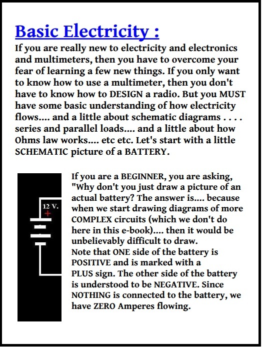The author of this book has more than 40 years experience repairing electronics! This book contains everything you need to know to get a BEGINNER course in basic electronics. It includes a chapter on HOW TO SOLDER..... Ohms Law calculations, and many pages about how to purchase and USE digital volt meters (DMM's). The end of this 173 page e-book even gets into some "how to troubleshoot" circuit boards and how to measure components to see if they are good or bad. I wrote this book because when I was a small boy, I asked my father if he could help me learn electronics? My father said he knew NOTHING about that subject because he was a machinist. Now I am over 60 years old and retired from the electronics repair industry. I know how difficult it is to learn this subject if NOBODY HELPS YOU. This is the help I wish my father could have given me! And I make it YOURS for only a couple dollars. I hope it helps a lot of people!