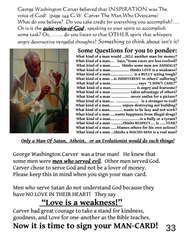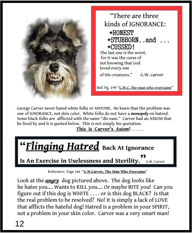 Carver did NOT invent peanut butter, but he did understand how to live a life of love! This book does NOT cover all of Carvers life... or his inventions. Many other books have covered those subjects sufficiently. This PDF e-book covers his faith in God and his philosophy of hard work and loving others. Suitable for junior, or high school age kids. Adults also will find this interesting. You don't have to read the 25 books I own (about Carver), to discover the SECRETS he figured out! Just read the 44 pages of this e-book! He is a great hero, but he is not the only subject of this book. The purpose of this book is mainly to help the troubled youth of America. George Carver knew some little known "secrets" about how to live a life of love and forgiveness. Using Carvers ideas about love and forgiveness and hard work is a starting point to mention other sources of wisdom too. Albert Einstein is quoted, and other famous people are also mentioned. All for the purpose of helping students who have negative attitudes, laziness, or poor behavior. This book would be helpful for any teacher or parent trying to reach a troubled youngster.